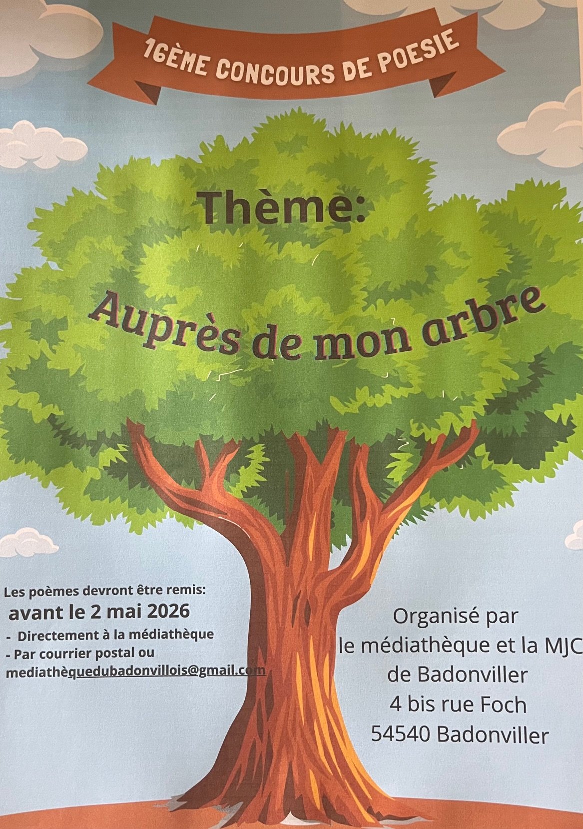 En 2026, la médiathèque de Badonviller, en partenariat avec la MJC, lance avec enthousiasme la 16ᵉ édition de son concours de poésie, devenu au fil des années un rendez-vous incontournable pour tous les amoureux des mots.