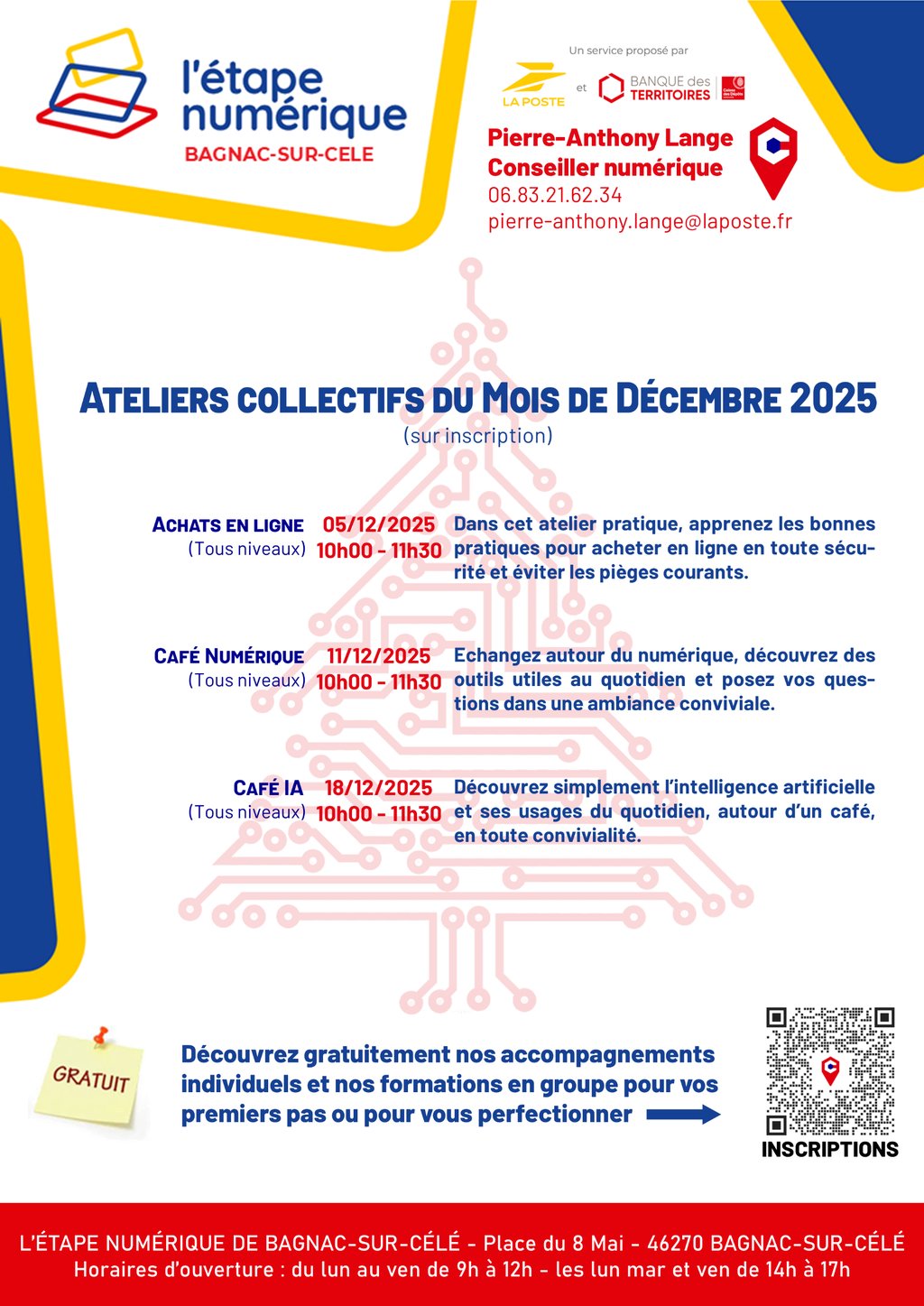 France Service Animation propose des ateliers collectifs gratuits sur inscription de 10h00 à 11h30.