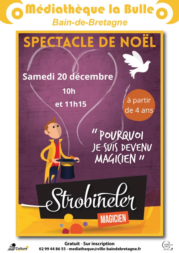 La médiathèque proposera un spectacle pour enfants intitulé "Pourquoi je suis devenu magicien", le samedi 20 décembre.