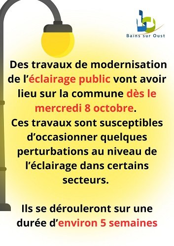 Des travaux de modernisation de l’éclairage public vont avoir lieu sur la commune dès le mercredi 8 octobre.
