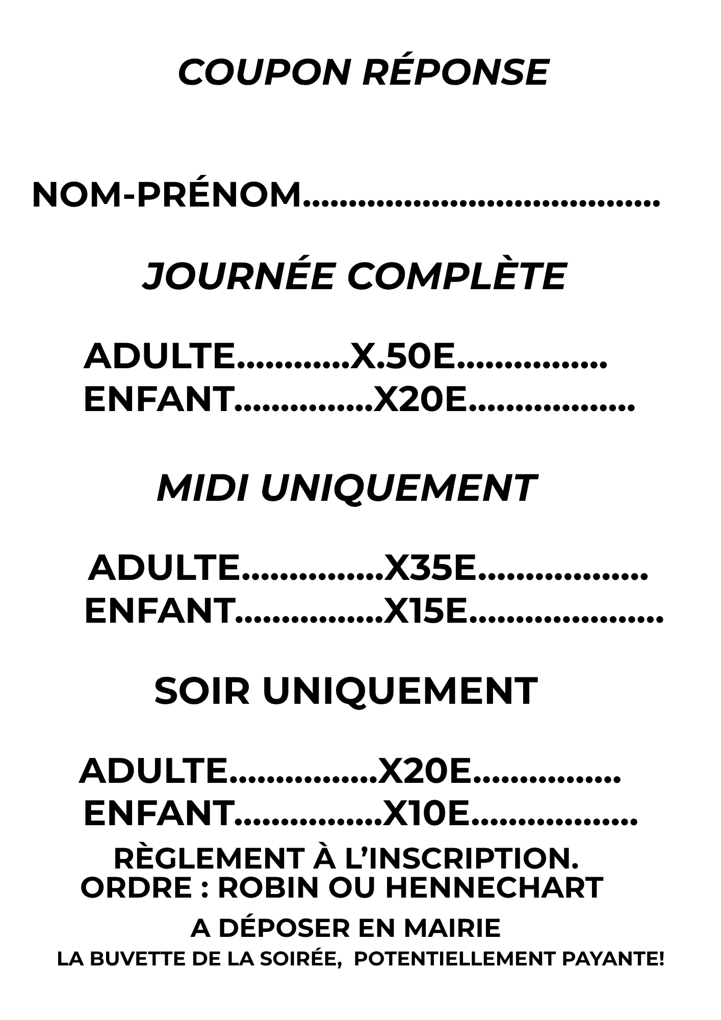Inscription avant le 10 Mars.