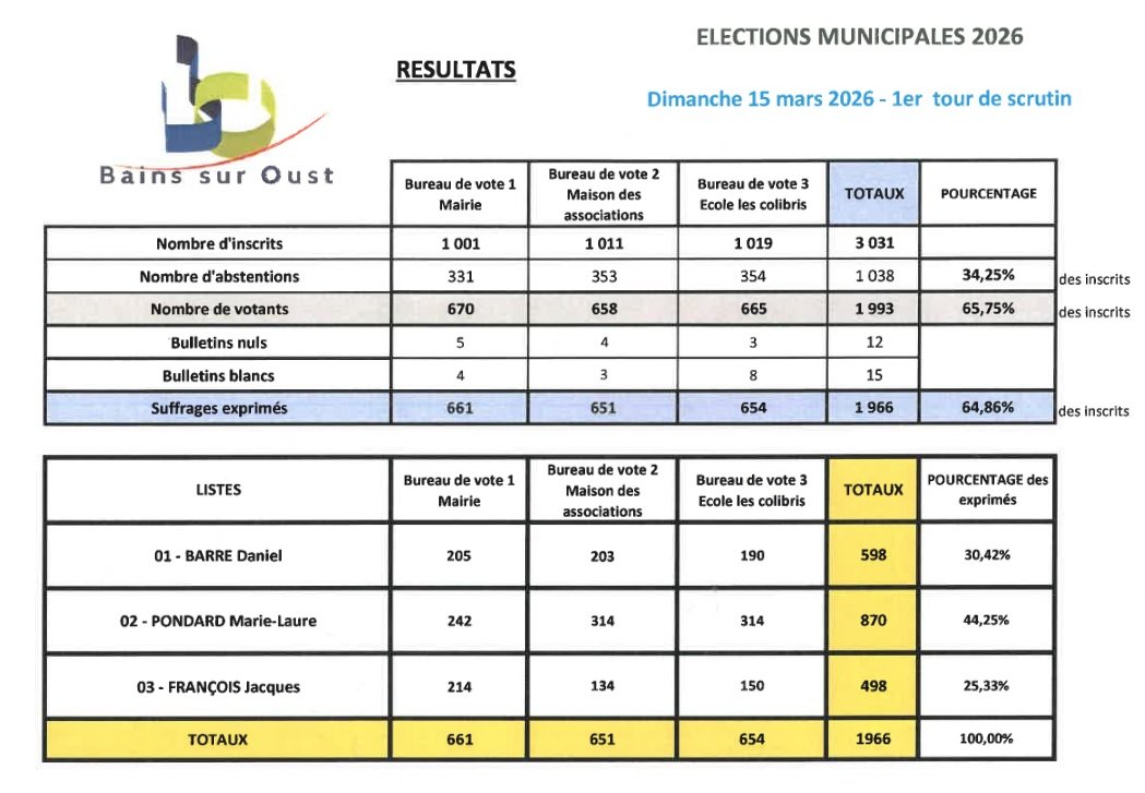 ÉLECTIONS MUNICIPALES - RÉSULTATS DU 15 MARS