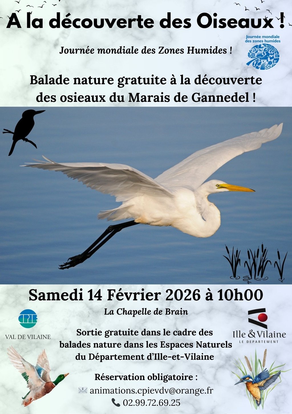 Venez découvrir les oiseaux du marais de Gannedel à la Chapelle de Brains, en balade .