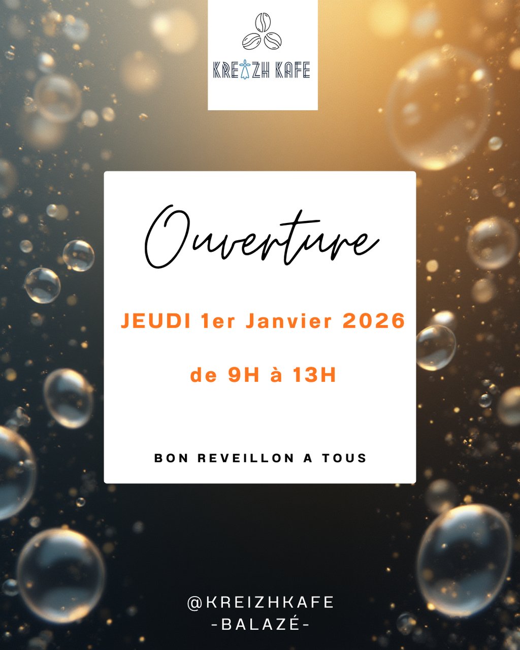 Nous sommes ouverts le jeudi 1er Janvier 2026 de 9h à 13h.