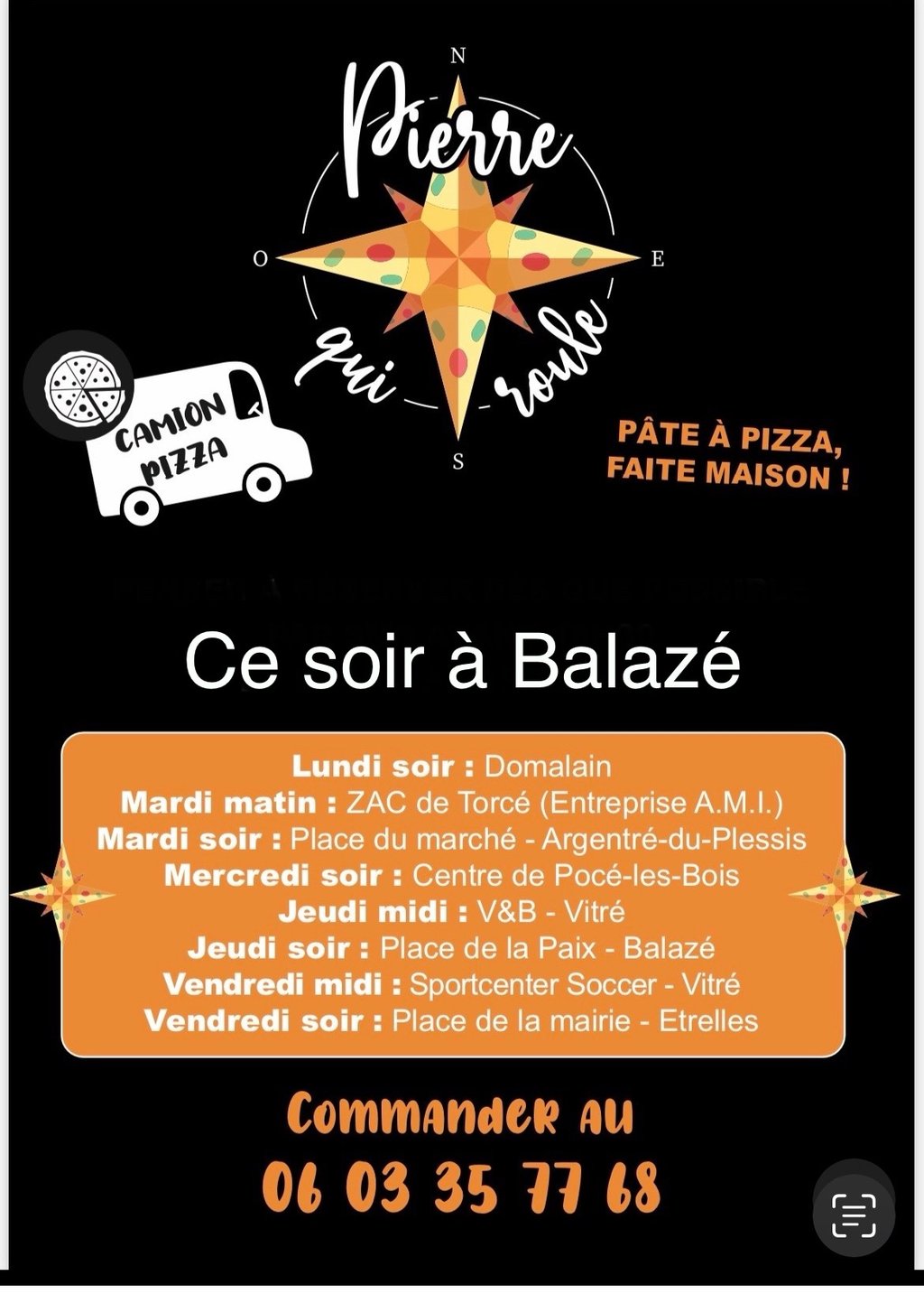 Les commandes sont possibles par téléphone ou sur place.