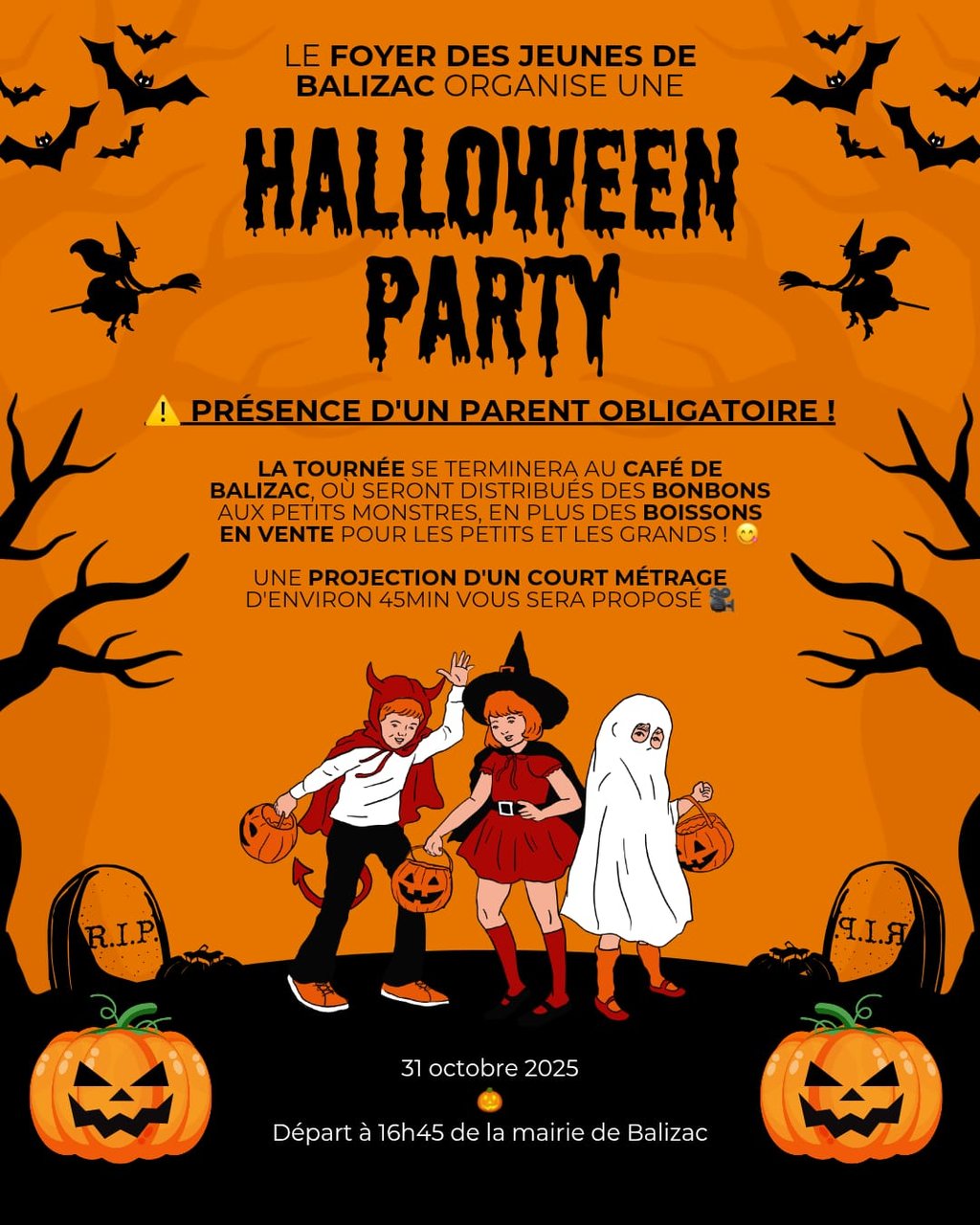 Le foyer des jeunes de Balizac organise HALLOWEEN PARTY le 31 Octobre 2025.
