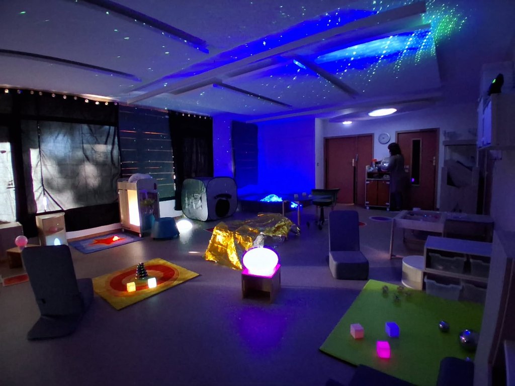 La salle de jeux du Rpe, Ă la Gare des Maynats, sâest transformĂ©e pour lâoccasion : lumiĂšre tamisĂ©e, ambiance apaisante et matĂ©riel sensoriel Ă explorer đ¶âš