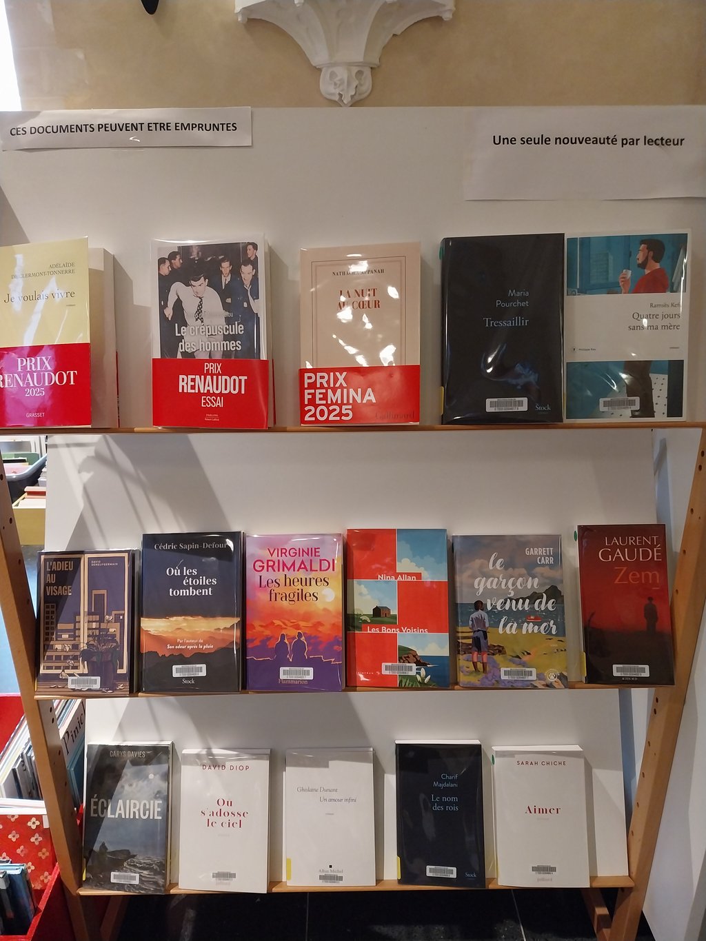 Dès samedi 13 décembre, vous pourrez emprunter les derniers prix Goncourt, Renaudot, Médicis ou autres ouvrages récents.