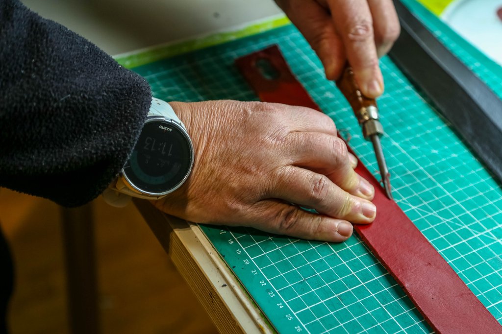 Installée à Bannalec depuis 2021, Françoise Huvet a ouvert chez elle un atelier de maroquinerie où elle crée et répare des articles en cuir. Ancienne responsable d’un centre équestre en Auvergne, elle s’est reconvertie après un accident. « Le cuir faisait partie de mon quotidien, c’était naturel d’en faire mon métier », explique-t-elle. Formée auprès de selliers puis par une professionnelle de chez Vuitton, elle maîtrise aujourd’hui toutes les étapes de la création, du gabarit à la finition.