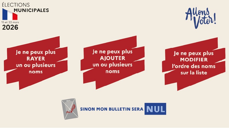🚫 si un bulletin de vote comporte une modification (nom rayé, nom ajouté, ordre inversé), celui-ci sera considéré comme nul et ne comptera pas dans les bulletins exprimés lors du dépouillement.