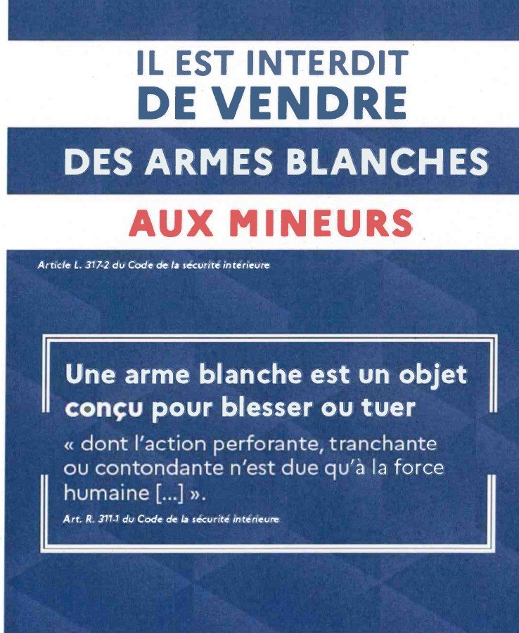 Un nouveau décret fait évoluer la réglementation sur l'usage, la vente et le port des armes blanches. Voir les détails de la nouvelle classification dans le document joint.