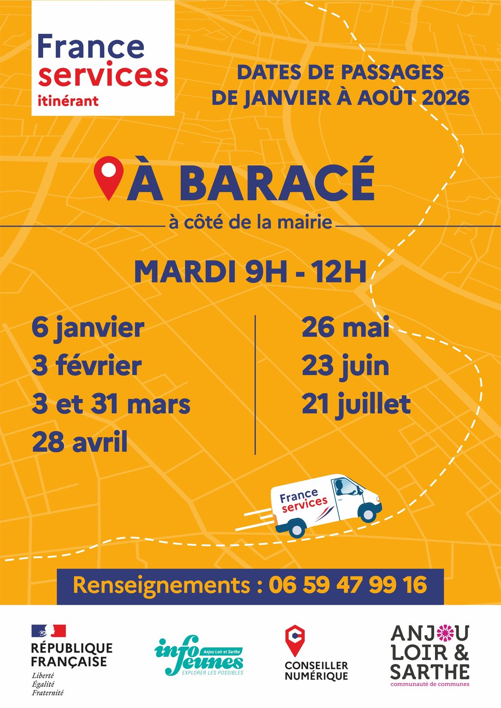 PERMANENCES DE FRANCE SERVICES ITINÉRANT À BARACÉ EN 2026