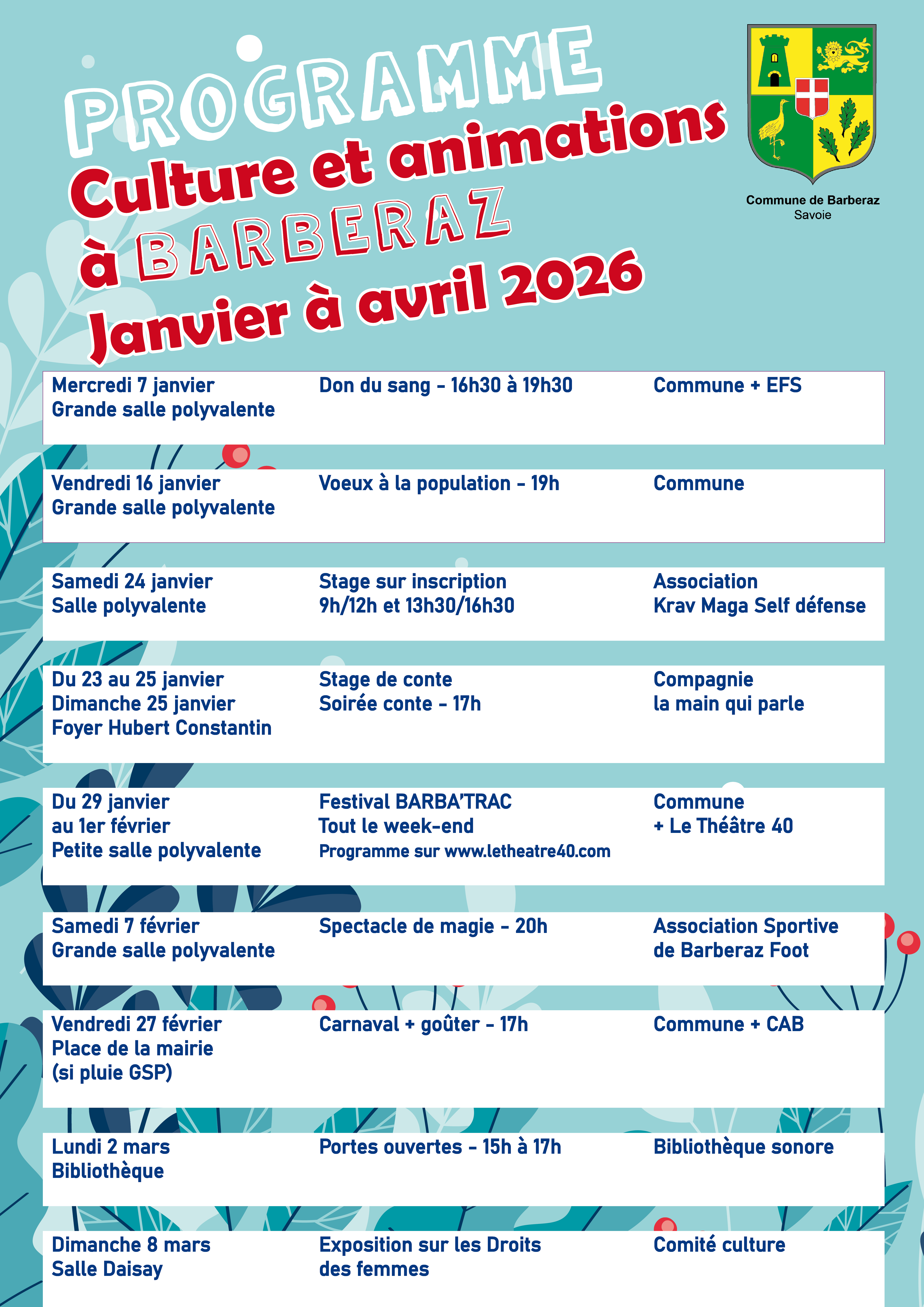 PROGRAMME CULTURE ET ANIMATIONS 1ER TRIMESTRE 2026