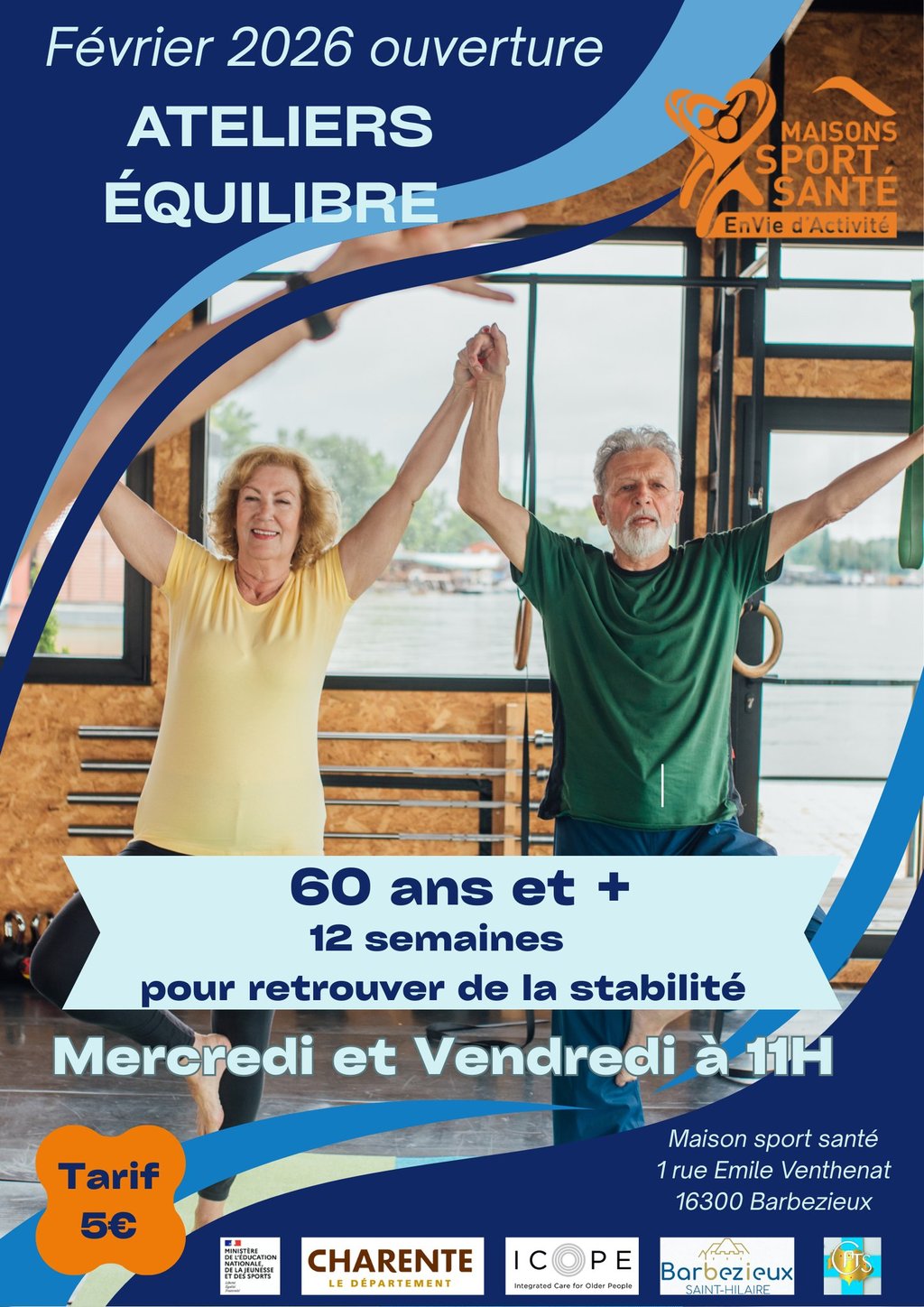 À compter du 2 février, elle propose des ateliers « Je trouve mon équilibre », animés par Jordan et Fabien à la Maison Sport Santé de Barbezieux. Ce programme vous donnera les clés pour renforcer votre équilibre physique et prévenir les risques de chute.