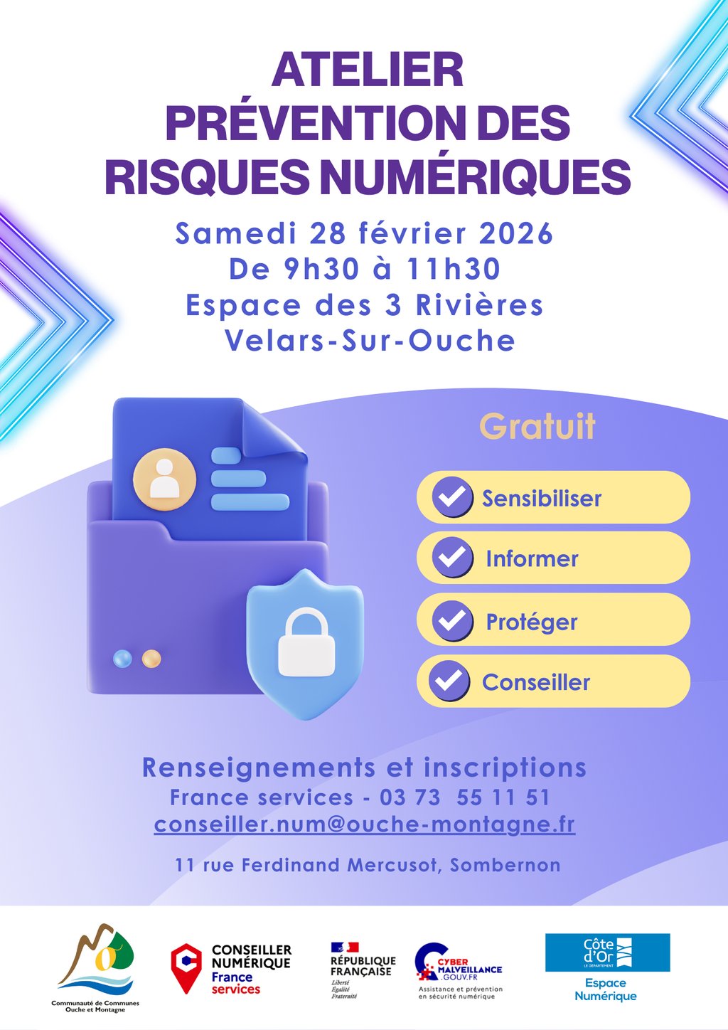Elodie, conseillère numérique France services, vous propose un atelier collectif gratuit le samedi 28 février prochain, à Velars-sur-Ouche (Espace des 3 rivières), à 09h30.