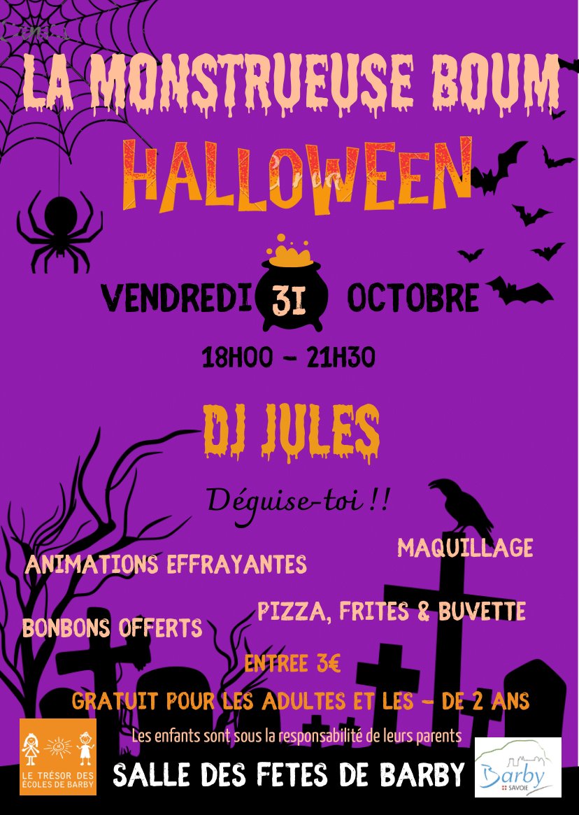Le "Trésor des Écoles" organise la "Boom d'Halloween" le vendredi 31 octobre de 18h à 21 h 30 à la salle des fêtes.