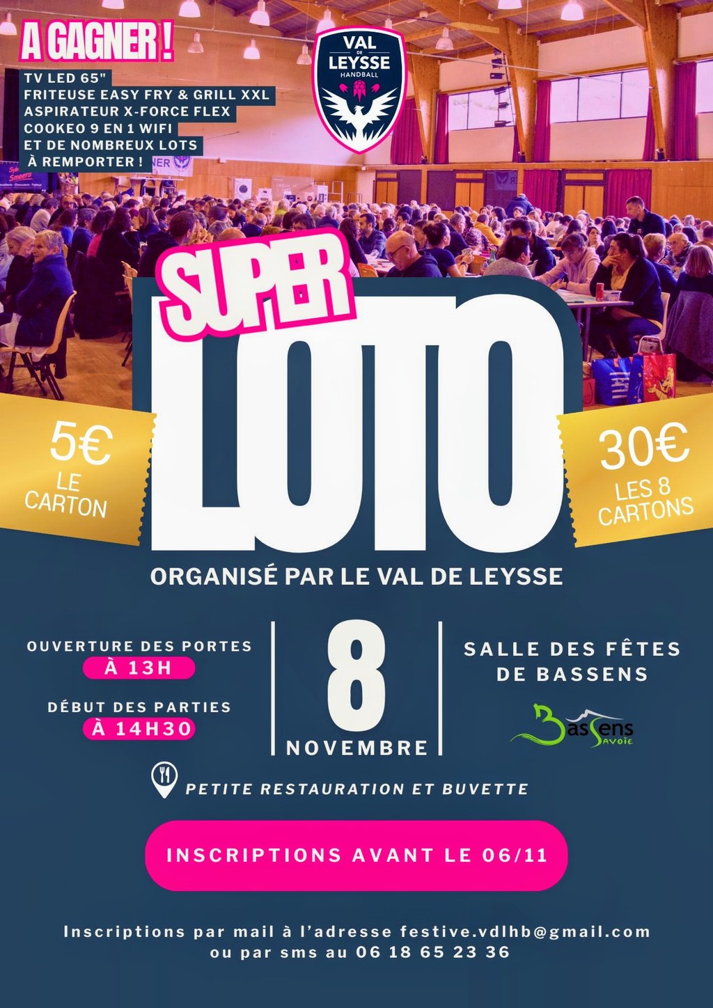 Super LOTO du Val-de-Leysse Hand-ball - samedi 8 novembre - Salle des fêtes de Bassens