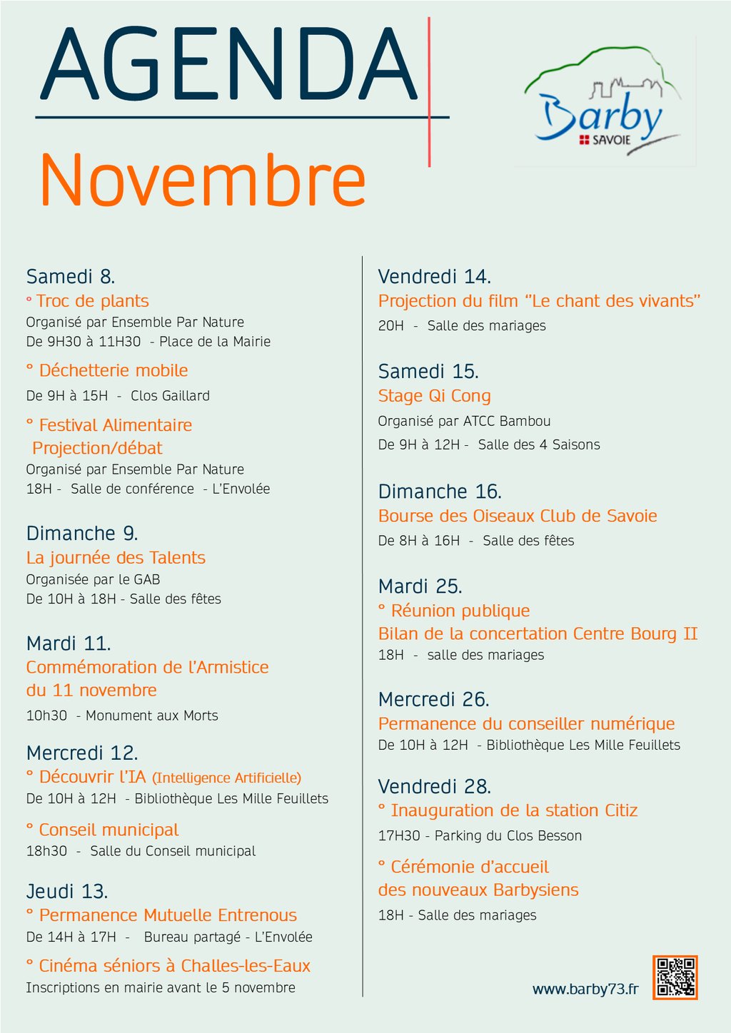 Tout le calendrier des manifestations de ce mois de novembre sur la commune.