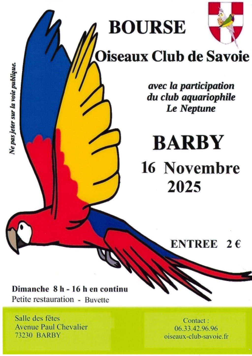 "L'Oiseaux Club de Savoie" organise une bourse aux oiseaux, le dimanche 16 novembre à la salle des fêtes de Barby.