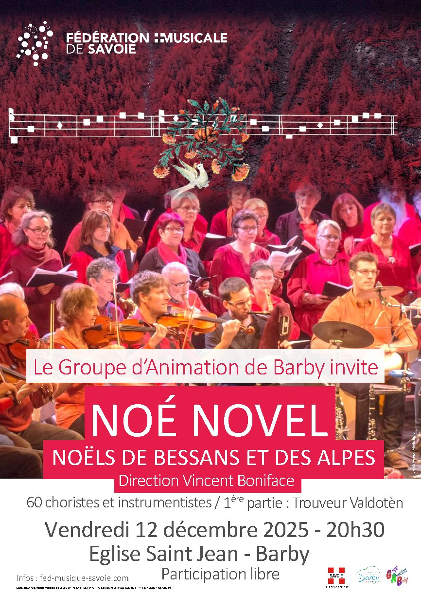 Le Groupe d'Animation de Barby (GAB) vous invite au concert "NOE NOVEL Noëls de Bessans et des Alpes", le vendredi 12 décembre à 20 h 30 en l'église de Barby
