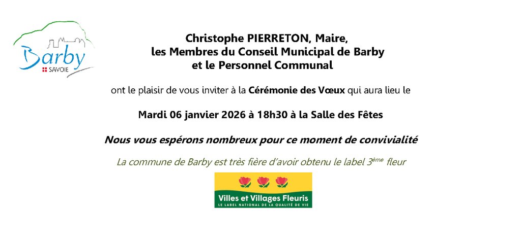 La cérémonie des vœux aura lieu le mardi 6 janvier à 18 h 30 à la salle des fêtes