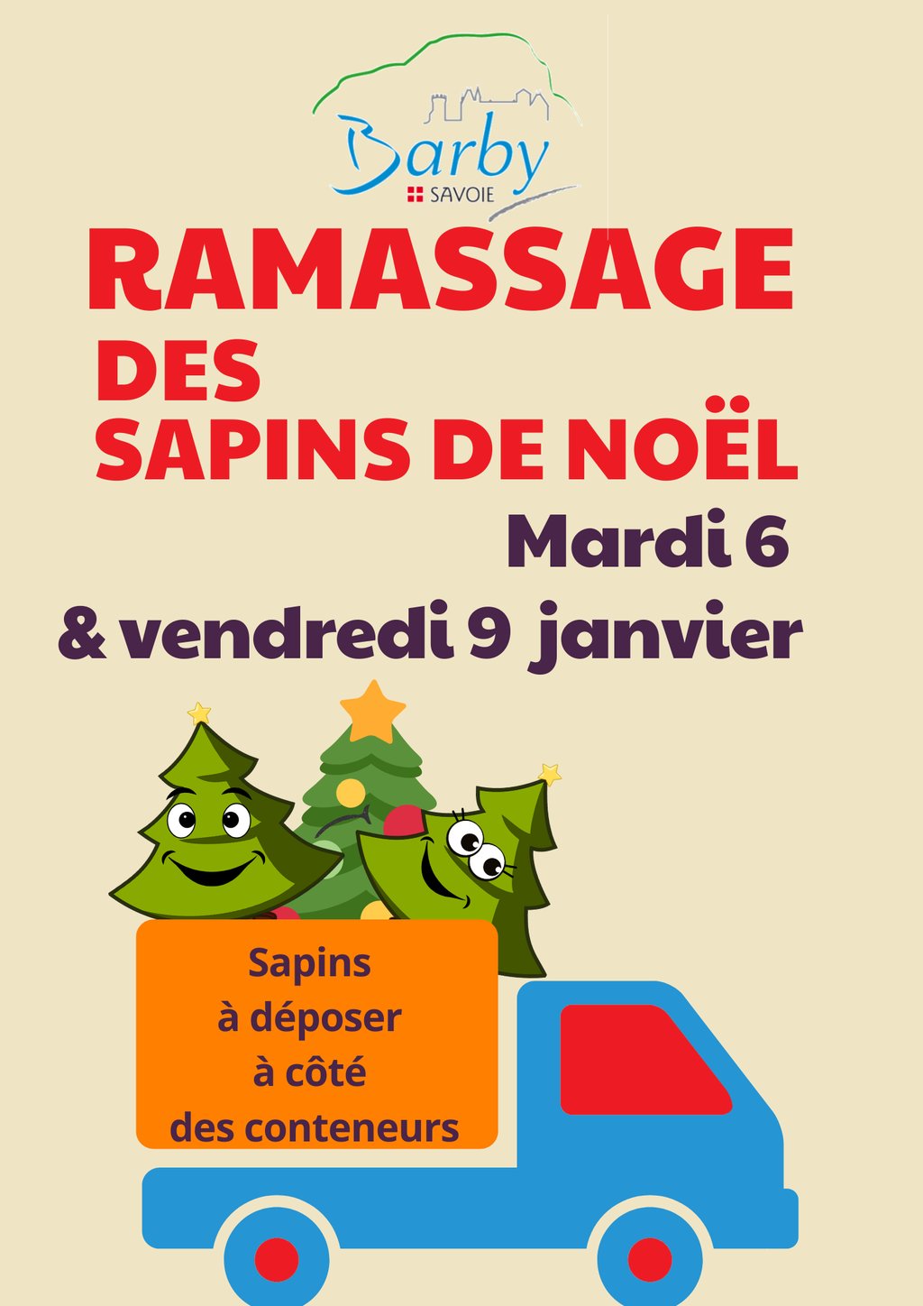 Le ramassage des sapins de Noël se fera le mardi 6 et vendredi 9 janvier. Dépose à côté des conteneurs.