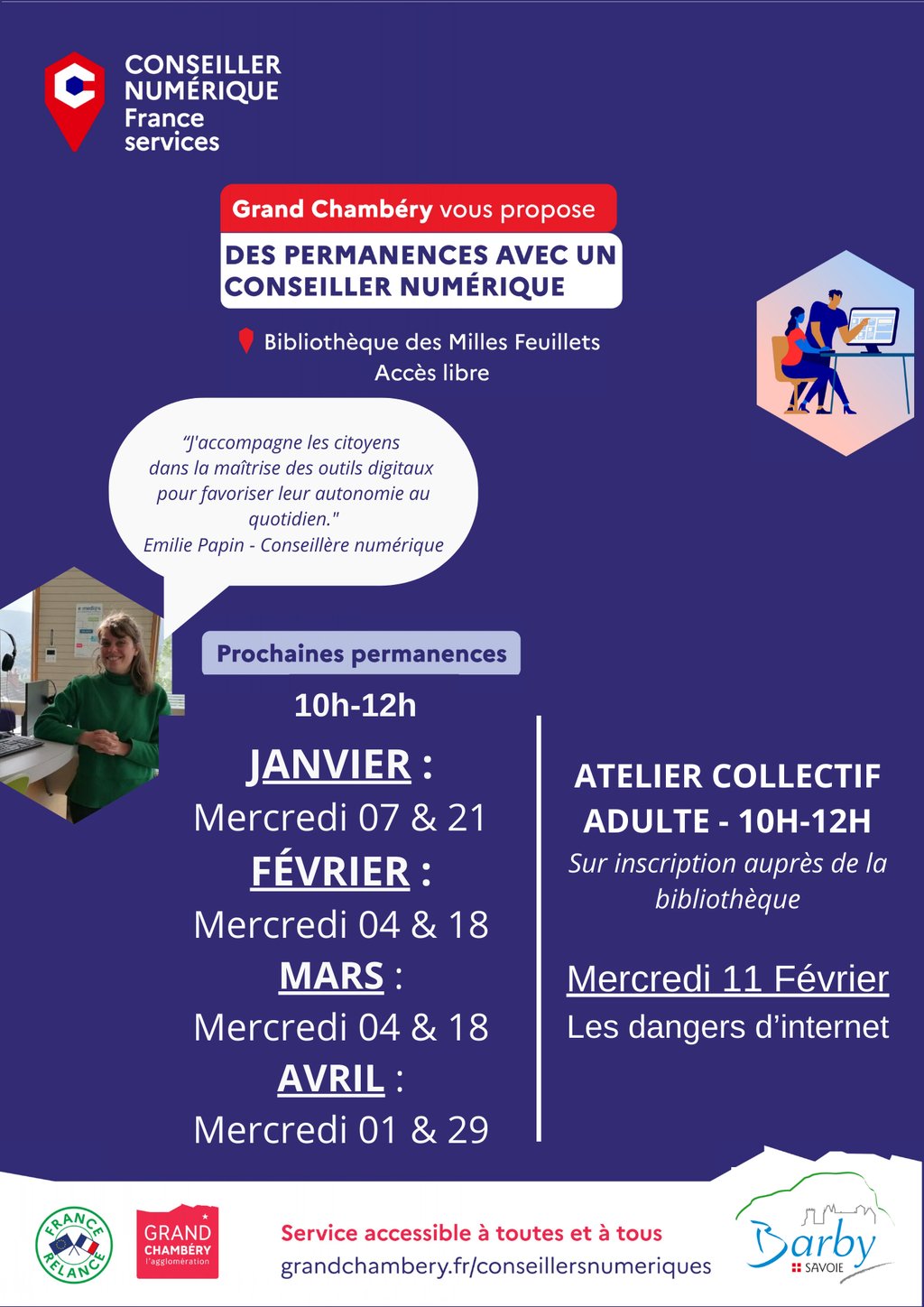 Grand Chambéry propose des permanences et ateliers numériques à la bibliothèque. Voir le programme sur l'affiche jointe.
