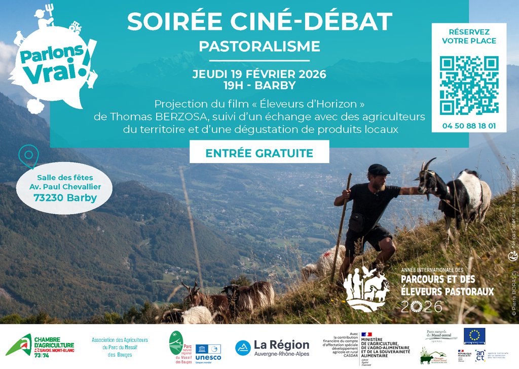 Une soirée CINÉ-DÉBAT "Pastoralisme" sera organisée le jeudi 19 février à 19 h 00 à la salle des fêtes.