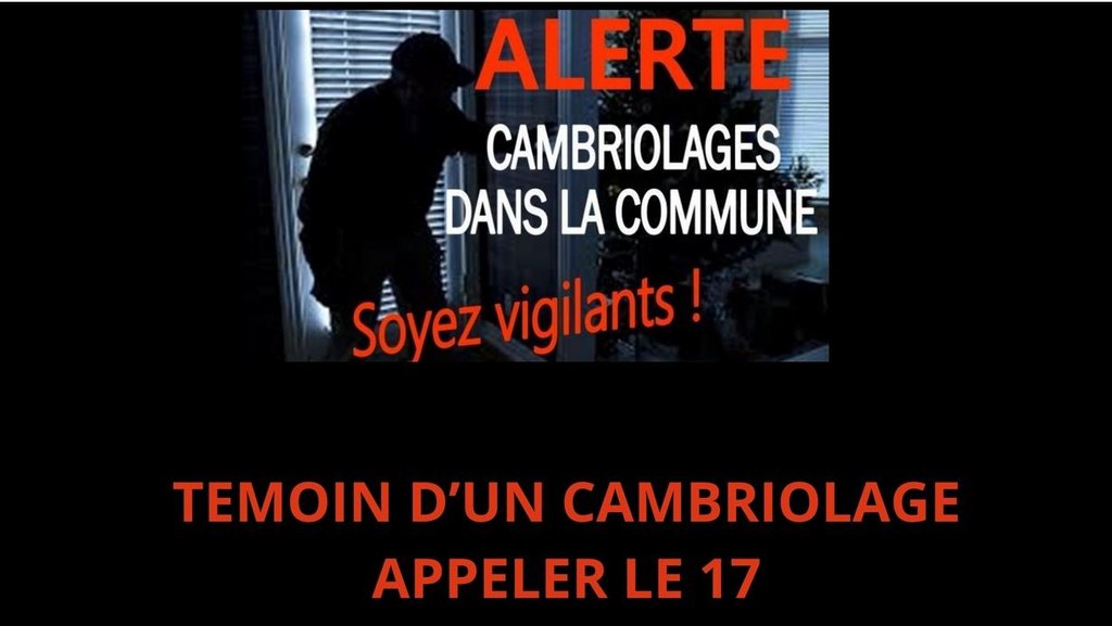 En raison d’une recrudescence de cambriolages sur le secteur et dans la commune, la Gendarmerie Nationale demande aux administrés de redoubler d’attention et de vigilance. Au moindre doute n’hésitez pas à composer le 17.