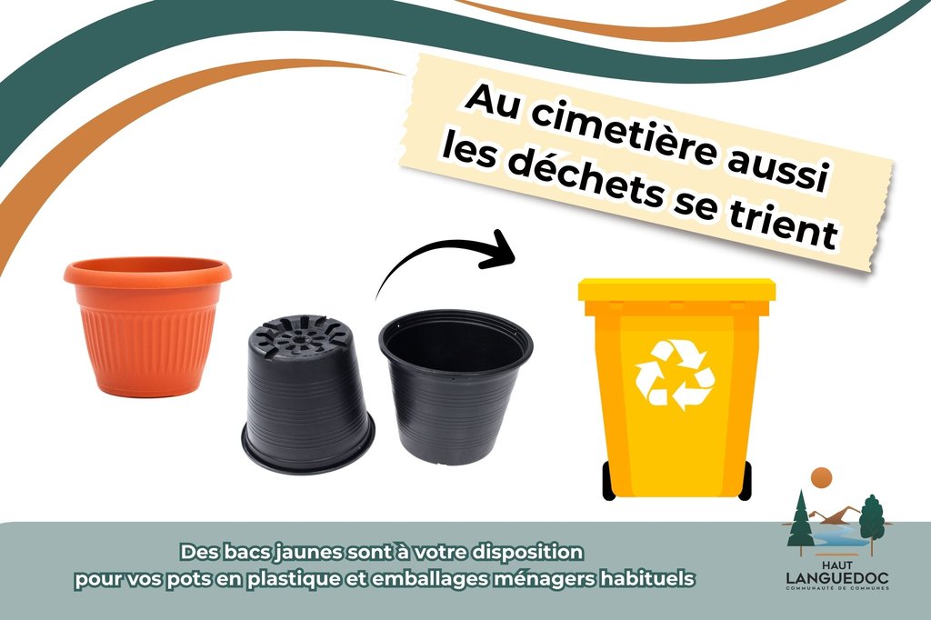 A l’occasion des vacances d’automne, période pendant laquelle les familles se rendent traditionnellement au cimetière pour nettoyer les tombes de leurs proches, la CC du Haut-Languedoc a souhaité mettre en place une action test, en accord avec les mairies concernées, afin de faciliter le tri des déchets aux administrés.