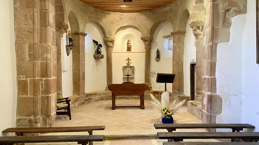 Implantée sur un ancien castrum médiéval, la chapelle révèle une architecture singulière mêlant influences romanes et gothiques. Son clocher-mur, son portail en arc brisé et son chevet semi-circulaire orné de chapiteaux sculptés témoignent d’un chantier réalisé en plusieurs phases entre le Xe et le XIIIe siècle. Les motifs décoratifs – volutes antiques, palmettes, rinceaux wisigothiques, scènes historiées et figures animales – témoignent d’un chantier réalisé en plusieurs phases entre le Xe et le XIIIe siècle. Cette richesse iconographique confère à la chapelle un caractère unique, digne d’attention pour les amateurs d’art religieux.
