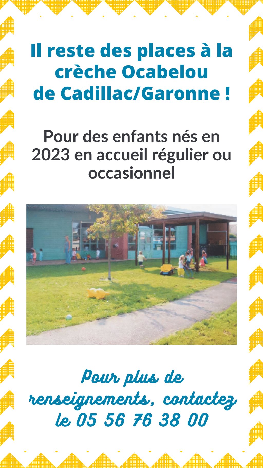• Ocabelou à Cadillac-sur-Garonne : Pour des enfants nés en 2023 en accueil régulier ou occasionnel