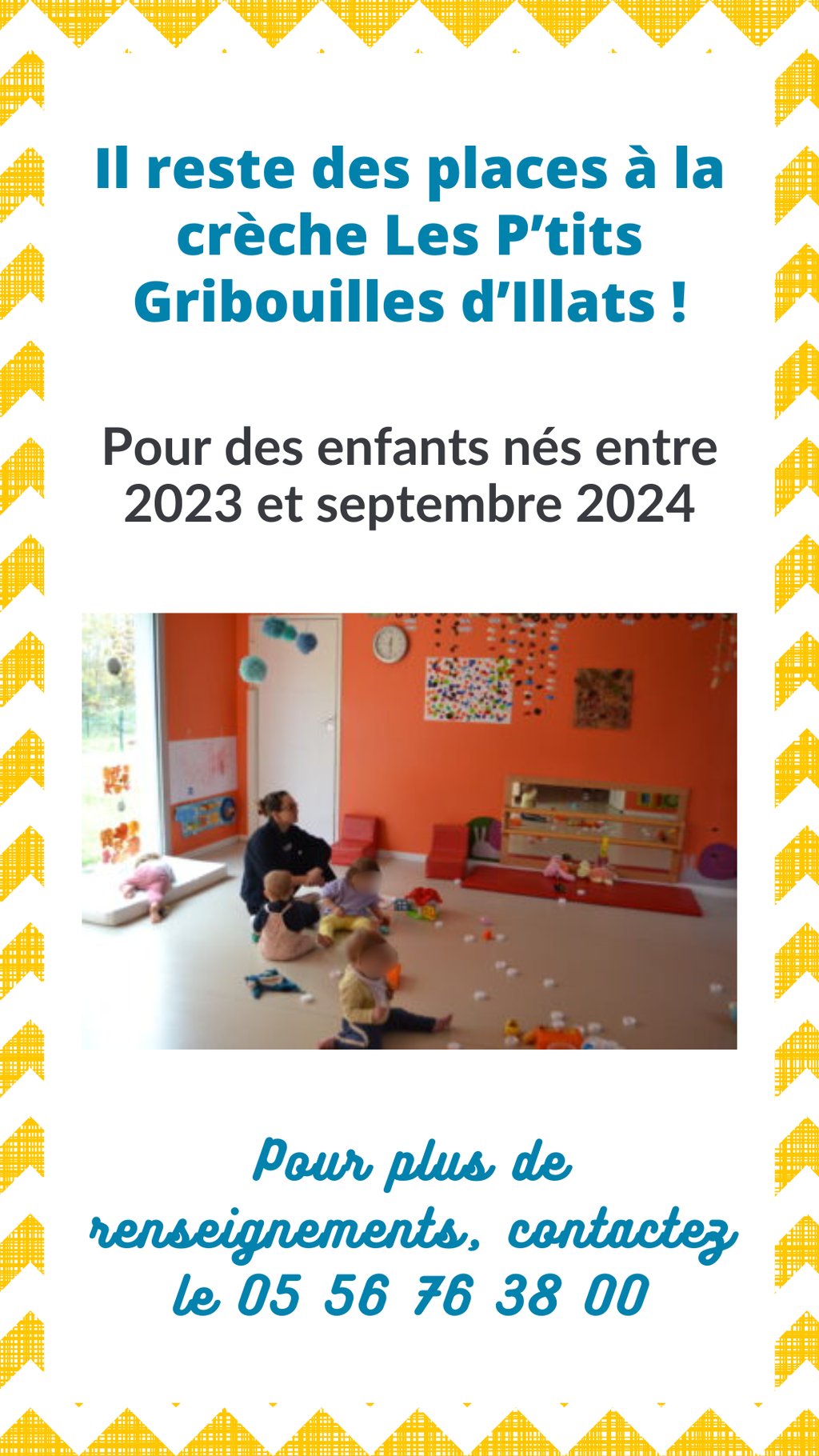 Des places sont encore disponibles dans les crèches Les P’tits Gribouilles à Illats et Ocabelou à Cadillac-sur-Garonne.