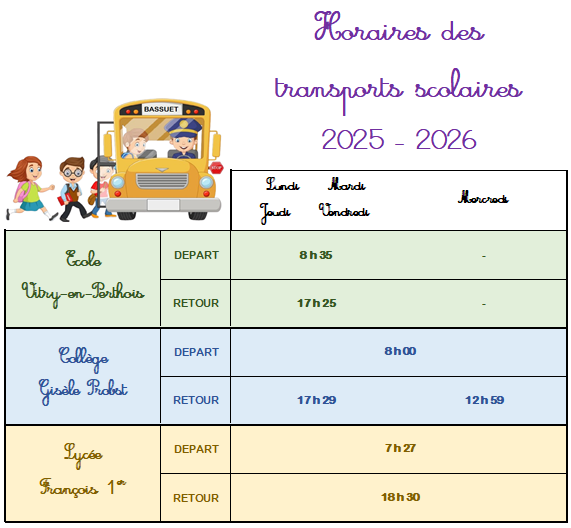 HORAIRES DES TRANSPORTS SCOLAIRES
