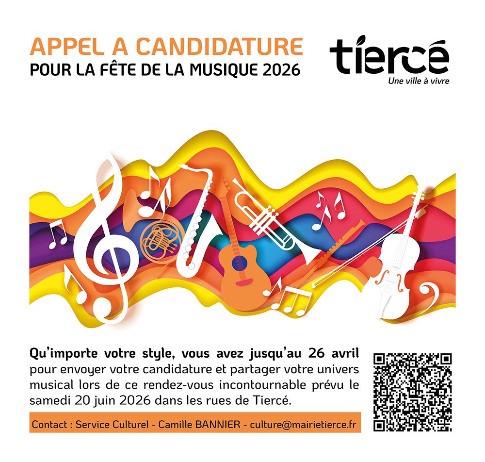 Vous êtes musicien solo ou en groupe et vous souhaitez participer à la Fête de la musique 2026 à Tiercé.