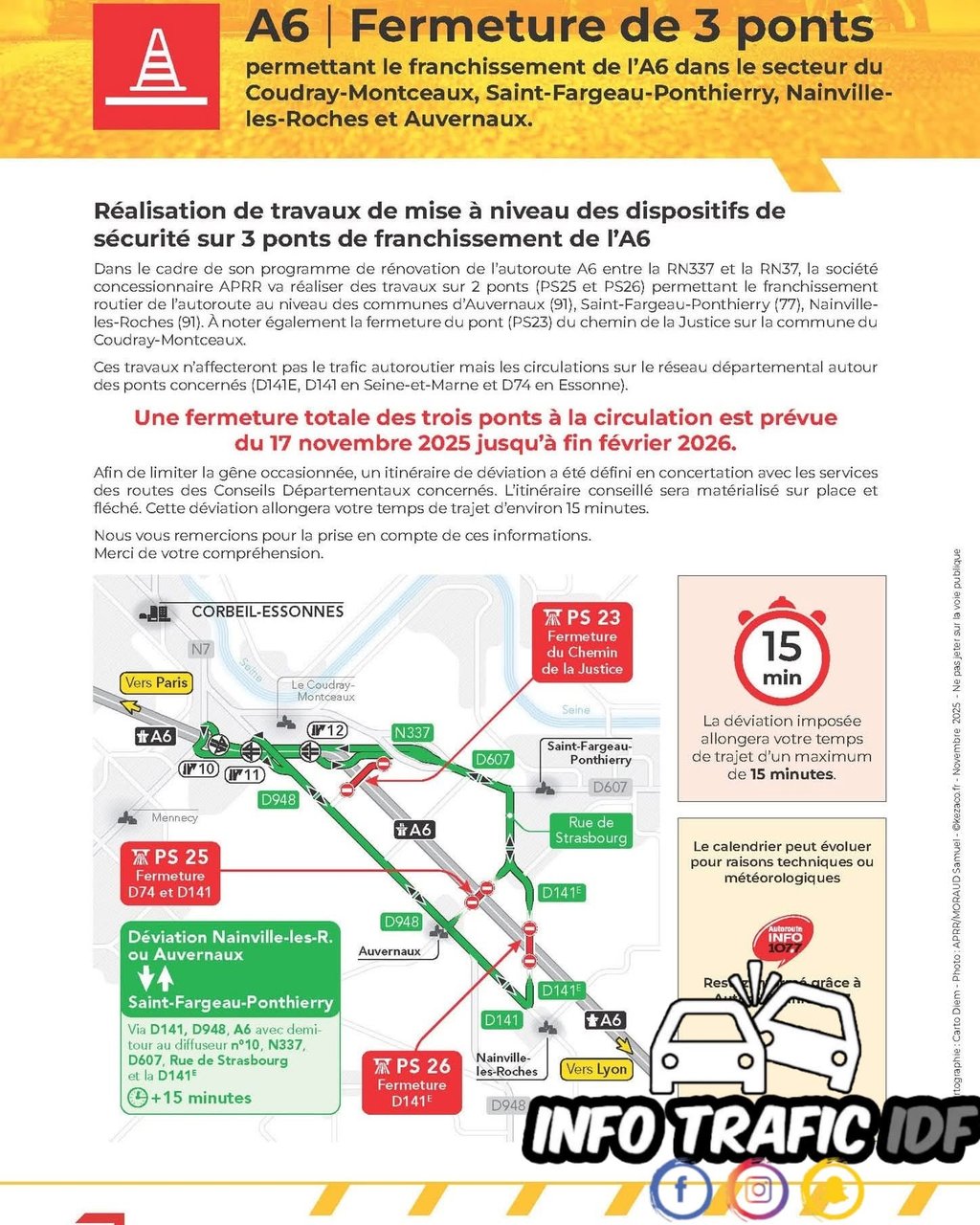 đ§INFO TRAVAUX A6đ§ SECTEUR 91/77
