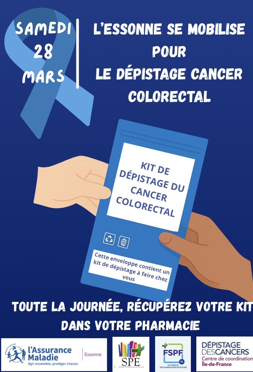 Le Département de l’Essonne, en partenariat avec les pharmaciens du territoire, se mobilise pour le dépistage du cancer colorectal.