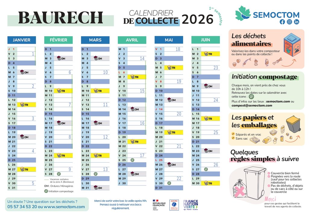 Calendrier SEMOCTOM BAURECH 1er Semestre