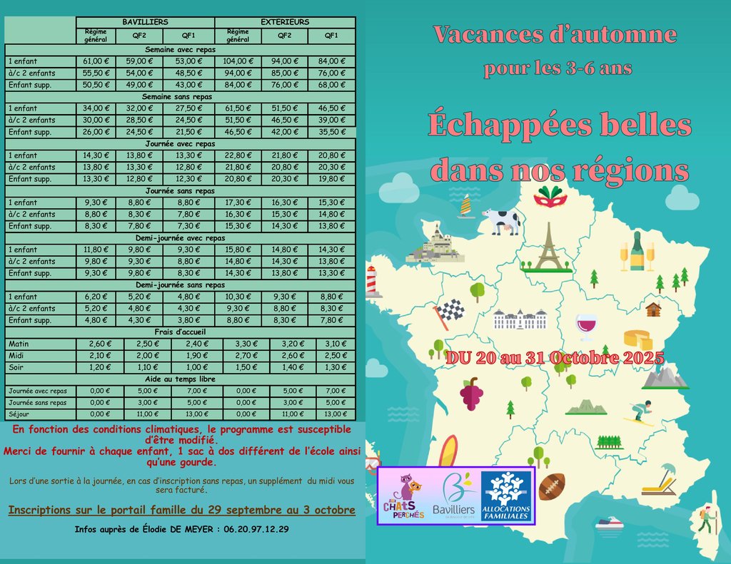 👉 Inscriptions sur le Portail Famille du lundi 29 septembre à 9h au vendredi 3 octobre à 17h.