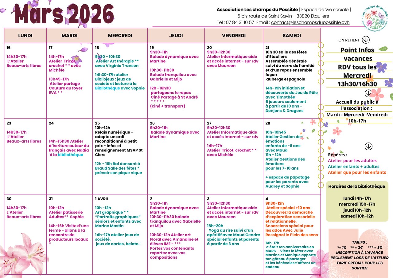 Voici le nouveau programme pour Mars 2026