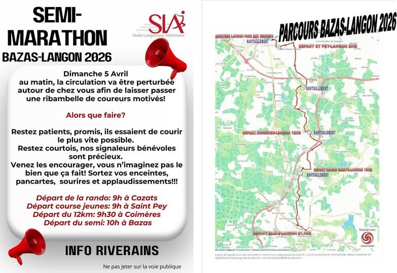 LE SEMI-MARATHON BAZAS / LANGON AURA LIEU LE DIMANCHE 5 AVRIL.