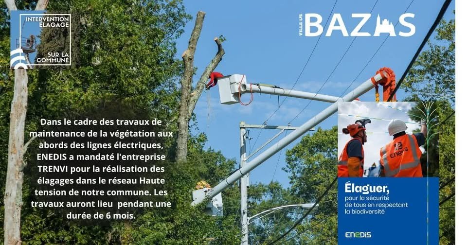 Dans le cadre d’une intervention sur les abords des lignes électriques, ENEDIS a mandaté l’entreprise TRENVI afin de procéder à des travaux d’élagage sur le réseau haute tension de notre commune.
