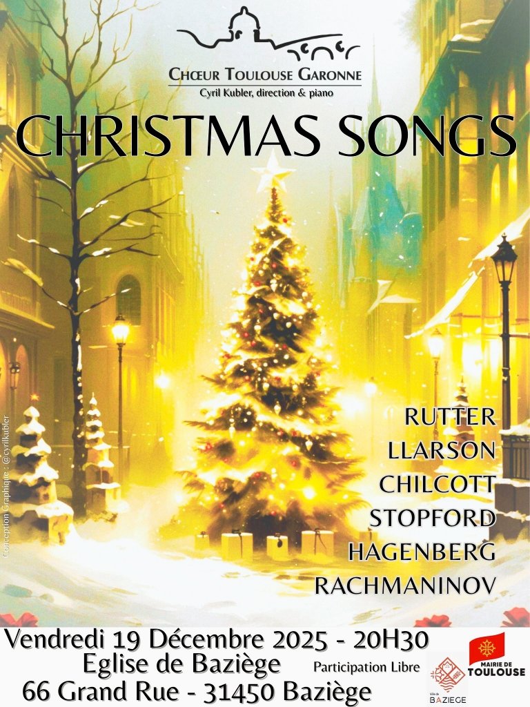 Vendredi 19 décembre, dès 20h30 à l'église St-Etienne, le Chœur Toulouse Garonne se déplacera à Baziège pour donner un concert classique sur les compositions des musiciens virtuoses : Rutter, Llarson, Chilcott, Stopford, Hagenberg et Rachmaninov.