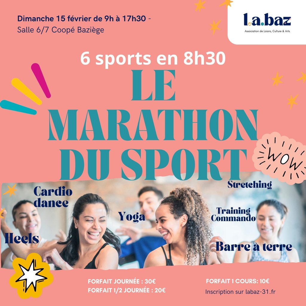 Dimanche 15 février, de 9h à 17h30, dans la salle 6/7 de La Coopé, venez participer à un cours, à plusieurs sur une demi-journée ou durant toute la journée pour bouger, transpirer et s’amuser ensemble.
