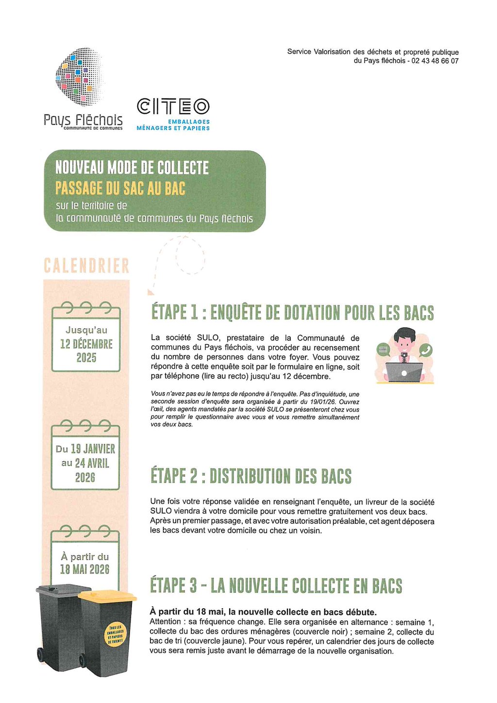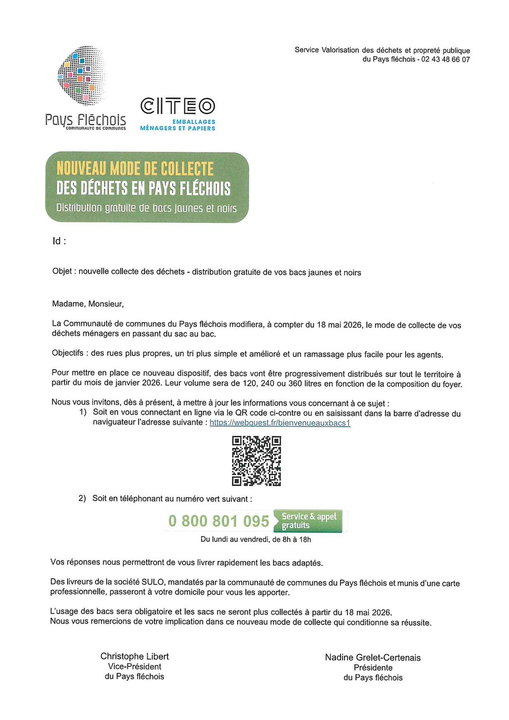 COURRIER- NOUVEAU MODE DE COLLECTE DES DÉCHETS EN PAYS FLÉCHOIS