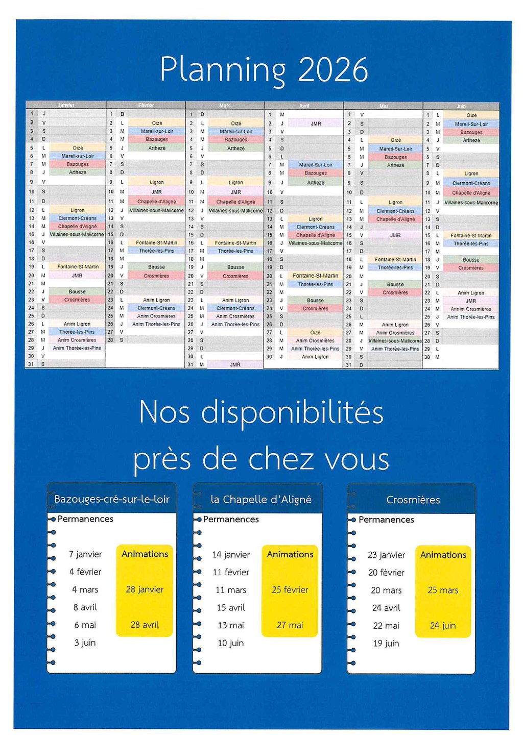 7 janvier, 4 février, 4 mars, 8 avril, 6 mai et 3 juin
