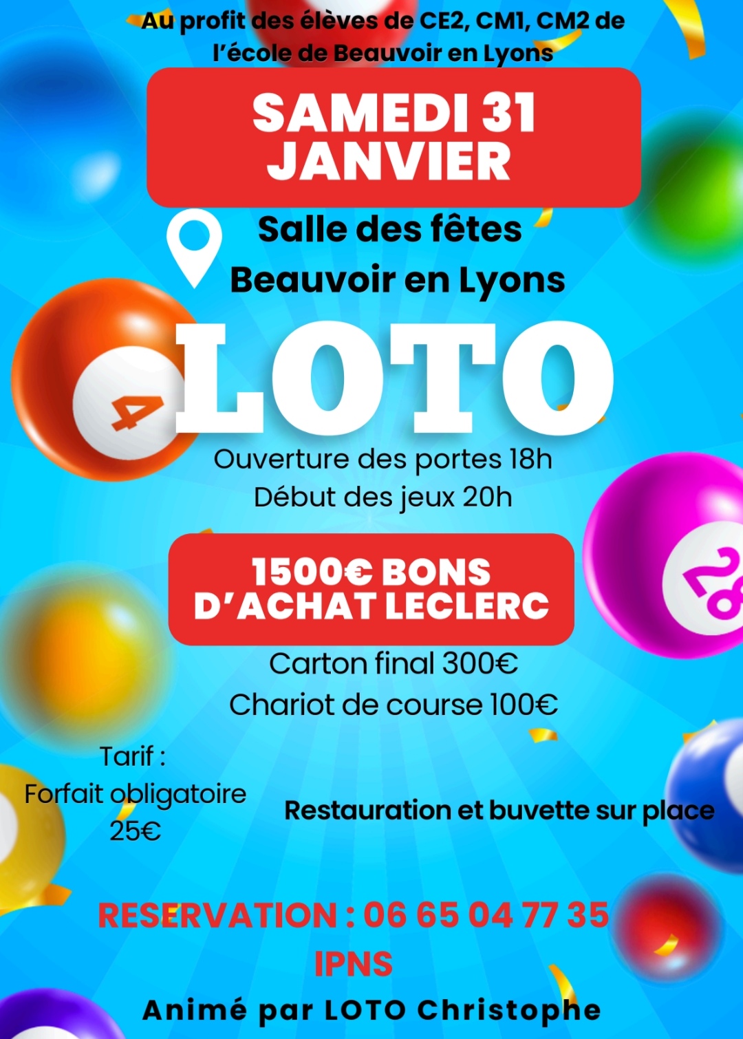 LOTO AU PROFIT DES ELEVES DE L'ECOLE DE BEAUVOIR-EN-LYONS