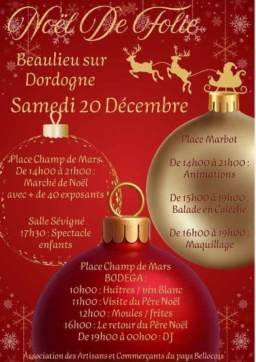 Noêl de Folie, marché de Noël place du champ de Mars, spectacle pour enfants Salle Sévigné, animations place Marbot, bodéga place du Champ de Mars