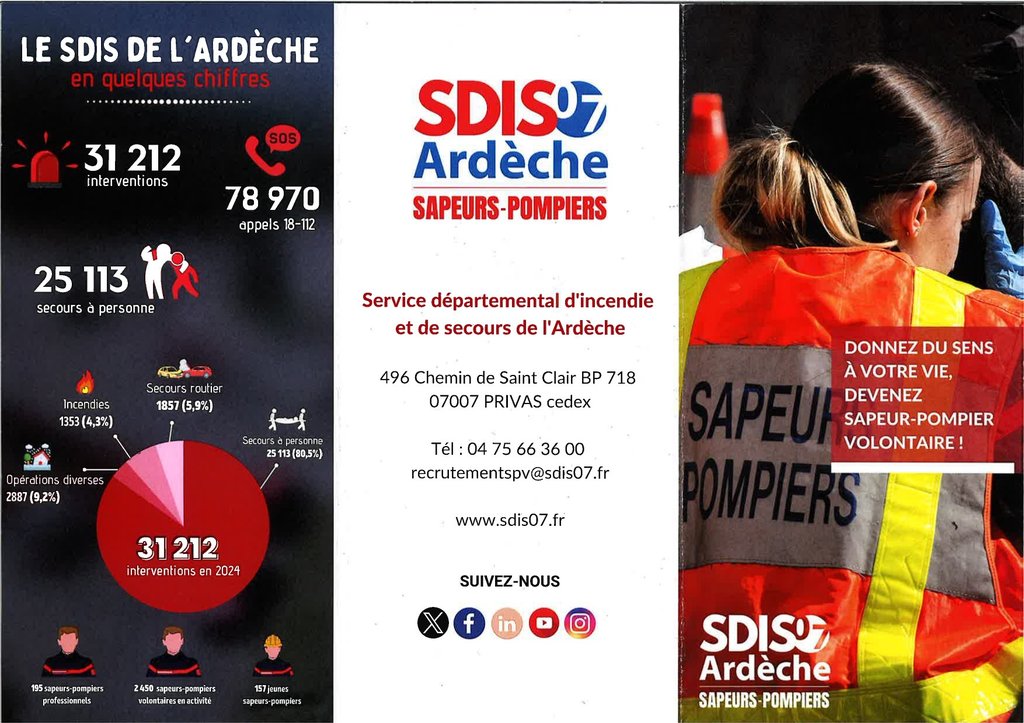 En Ardèche, 94 % des sapeurs-pompiers sont volontaires. Ils constituent la base de l'organisation des secours.