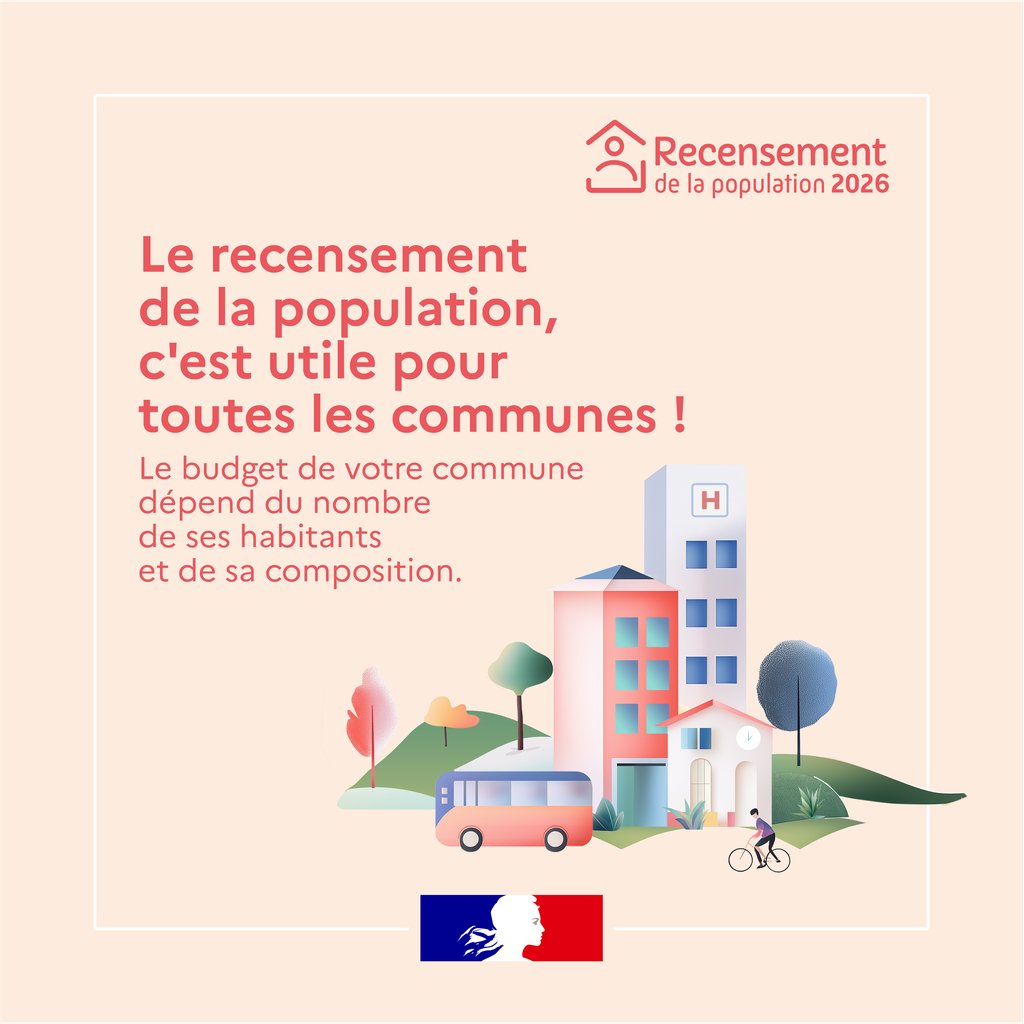 Notre commune est concernée par la campagne 2026 de recensement de la population entre le 15/01/2026 et le 14/02/2026.